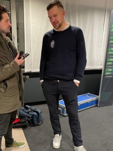 18.00 uur. “Een beetje oponthoud maar we zijn op tijd hoor,” meldt buschauffeur Walter Steenvoorden, gehuld in een keurige HFC-trui in de persruimte.
