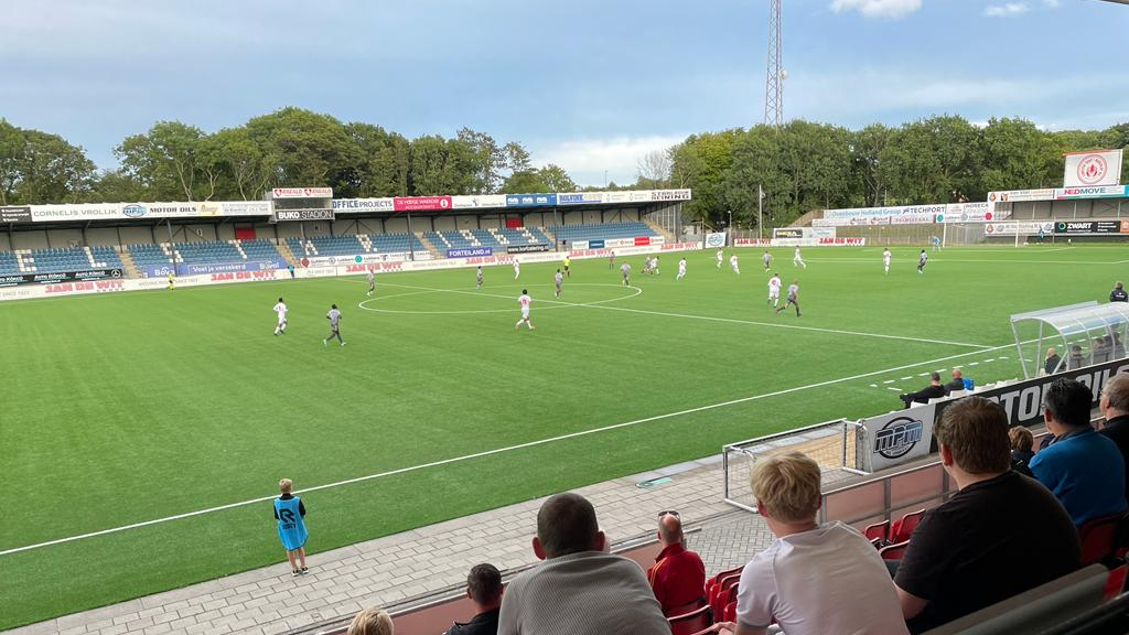 Het eerste half uur kon schriftelijk worden afgedaan. Er gebeurde weinig tot niets rond de strafschopgebieden. Daarna werd Telstar dominanter maar moest tot de laatste minuut voor rust wachten. Uitblinker Anwar Bensabouh vond met een prachtige afdraaiende vrije trap de geheel vrij staande Thomas Oude Kotte en die pakte het presentje dankbaar uit met een harde en geplaatste kopbal in de verre hoek; 1-0. Een minuut na rust dan toch nog een kans voor de gasten. Na een slippertje achterin plukte Ronald Koeman Jr, gadegeslagen door zijn vader, de bal van de voet van de Spakenburgse spits. Daarna was het eenrichtingsverkeer naar de goal van IJsselmeervogels. De tien wissels in de rust die de gasten toepasten, pakten slecht uit. Telstar ging verwoed op jacht naar meer goals maar een combinatie van geblokte schoten en te gehaaste schoten die naast of over de goal belanden, voorkwam een forse oefenzege. Voorzichtig conclusie: Snoei heeft achterin zijn zaakjes aardig voor elkaar, het middenveld opereerde bedrijvig en heeft duidelijk meer body maar voorin valt er wel nog wat winst te behalen. Zaterdag ontvangt Telstar Katwijk en Kon . HFC in het eigen stadion. De aftrap vindt plaats om 13.00 uur.